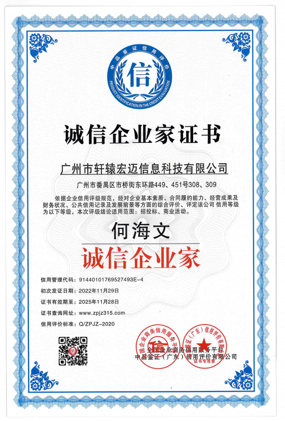 誠信企業家證書